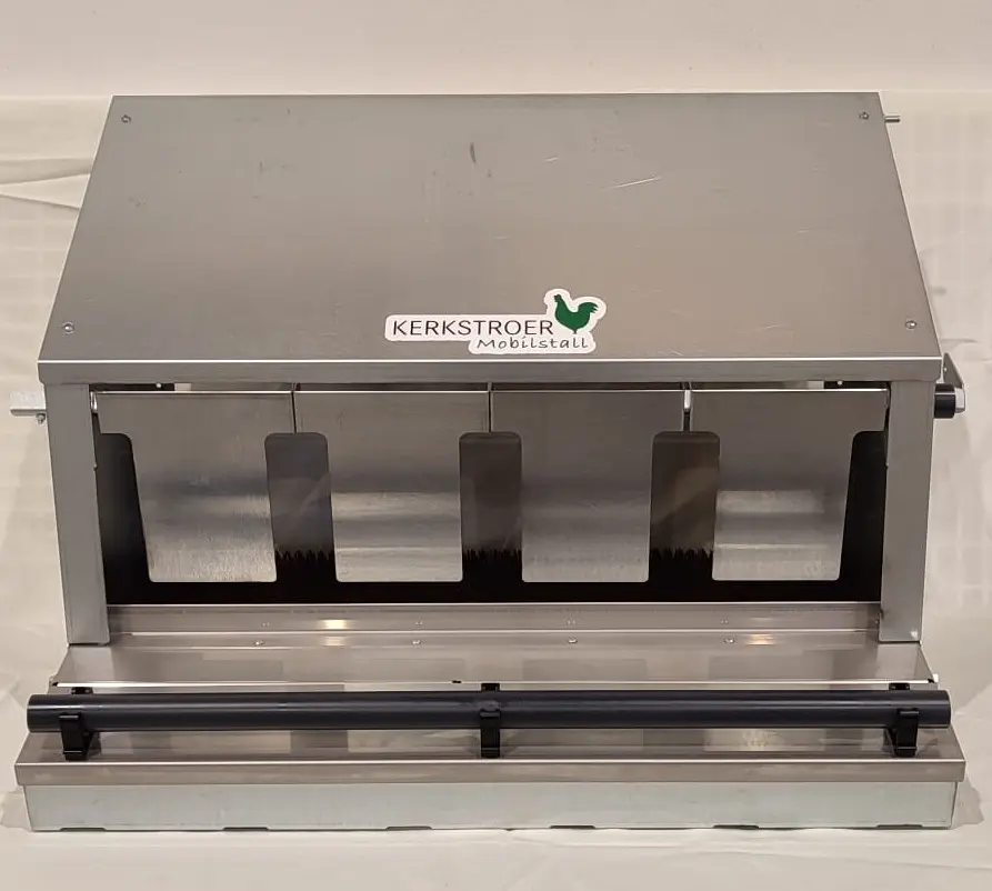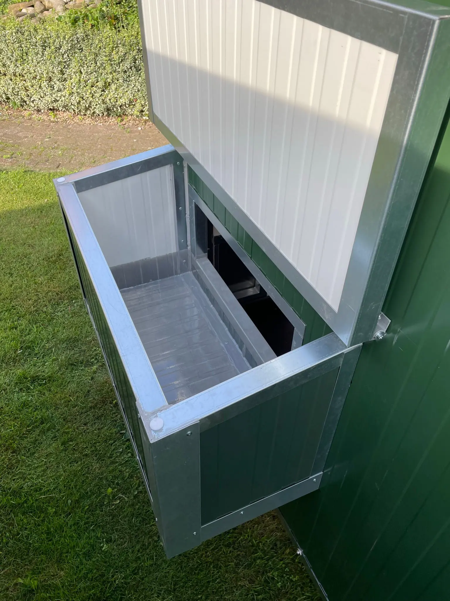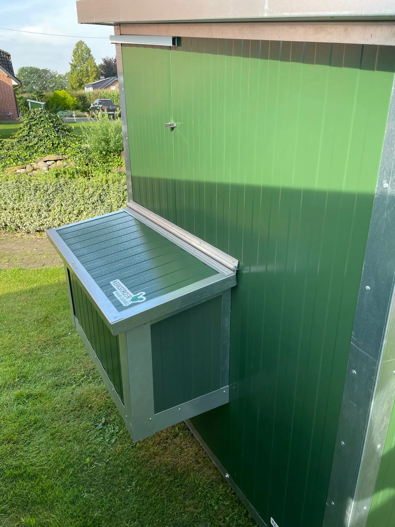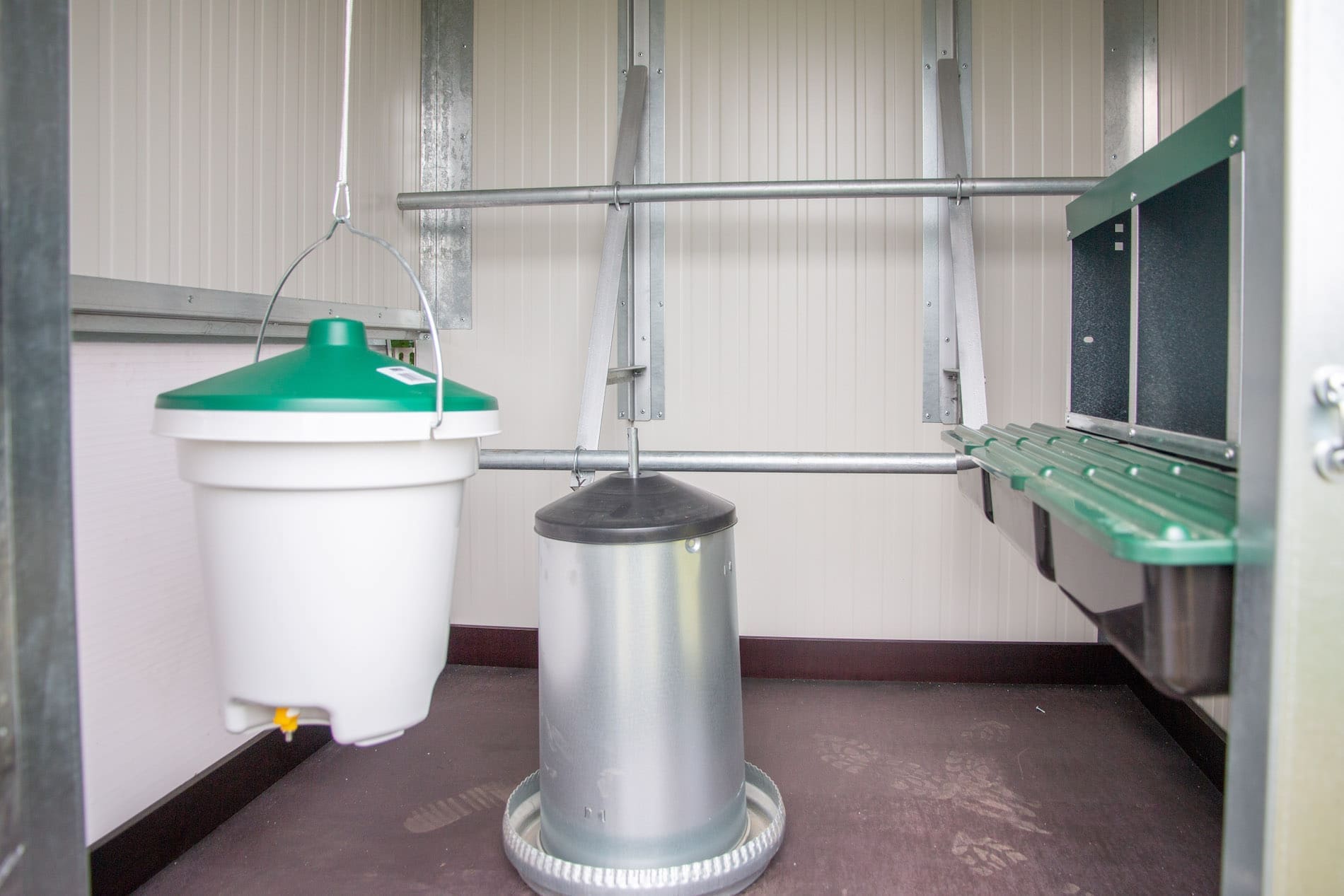 Der Mobilstall 20 ist mit einem 12 L Eimer für Frischwasser ausgestattet. Sie können den Wasserbehälter uneingeschränkt einsehen, somit haben Sie immer eine optische Kontrolle über Füllmenge und Wasserqualität. Der Wasserbehälter lässt sich zur Reinigung und Befüllung einfach entnehmen.