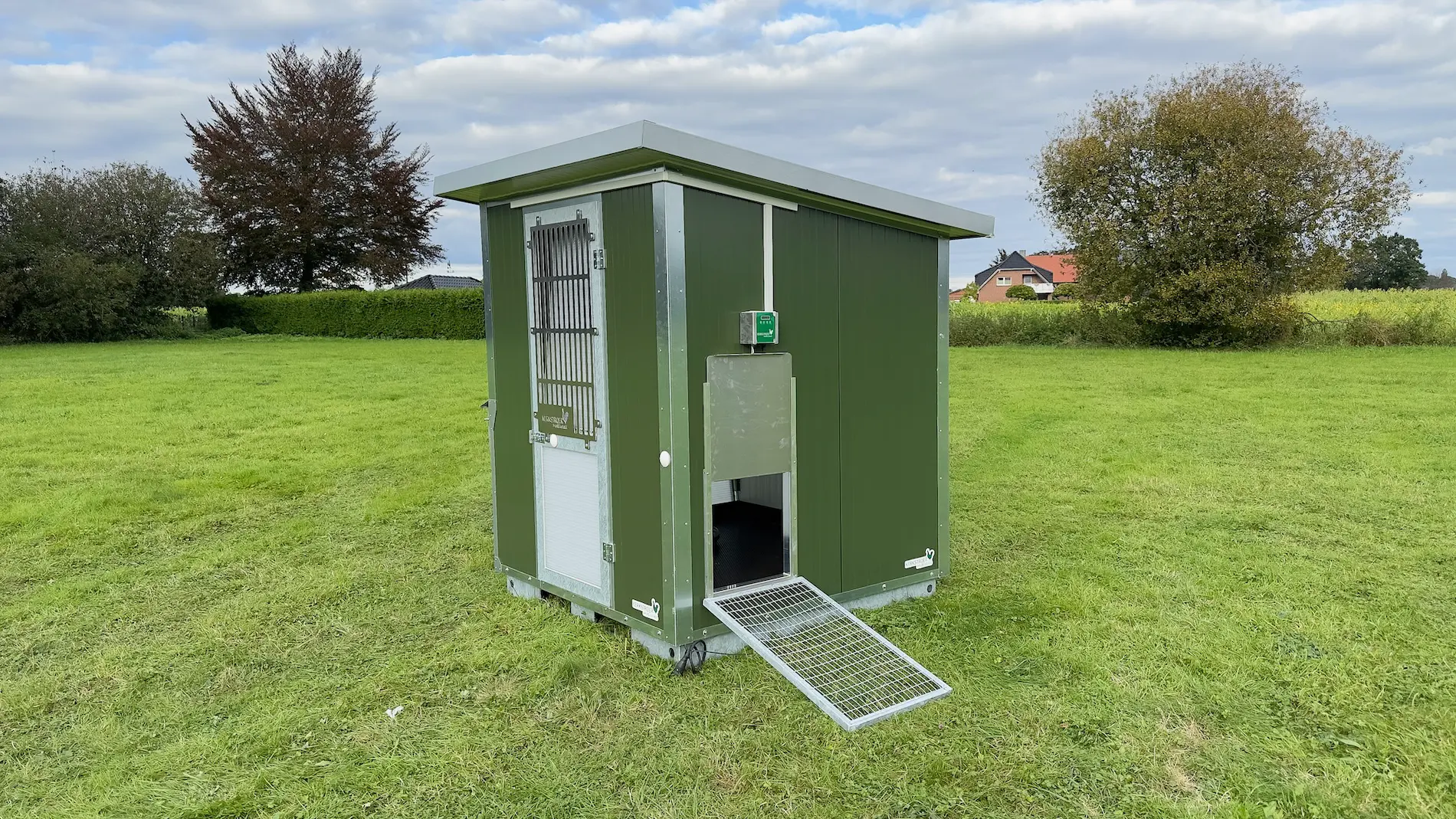 Die Hühnerklappe und das Licht im Stall werden automatisch gesteuert. Wir haben im Mobilstall einen Dämmerungssensor und eine Zeitsteuerung verbaut. Sie können beide Sensoren selbst einstellen. Sie entscheiden, wann das Licht im Stall an bzw. ausgehen soll und wann sich die Klappe öffnen bzw. schließen soll.